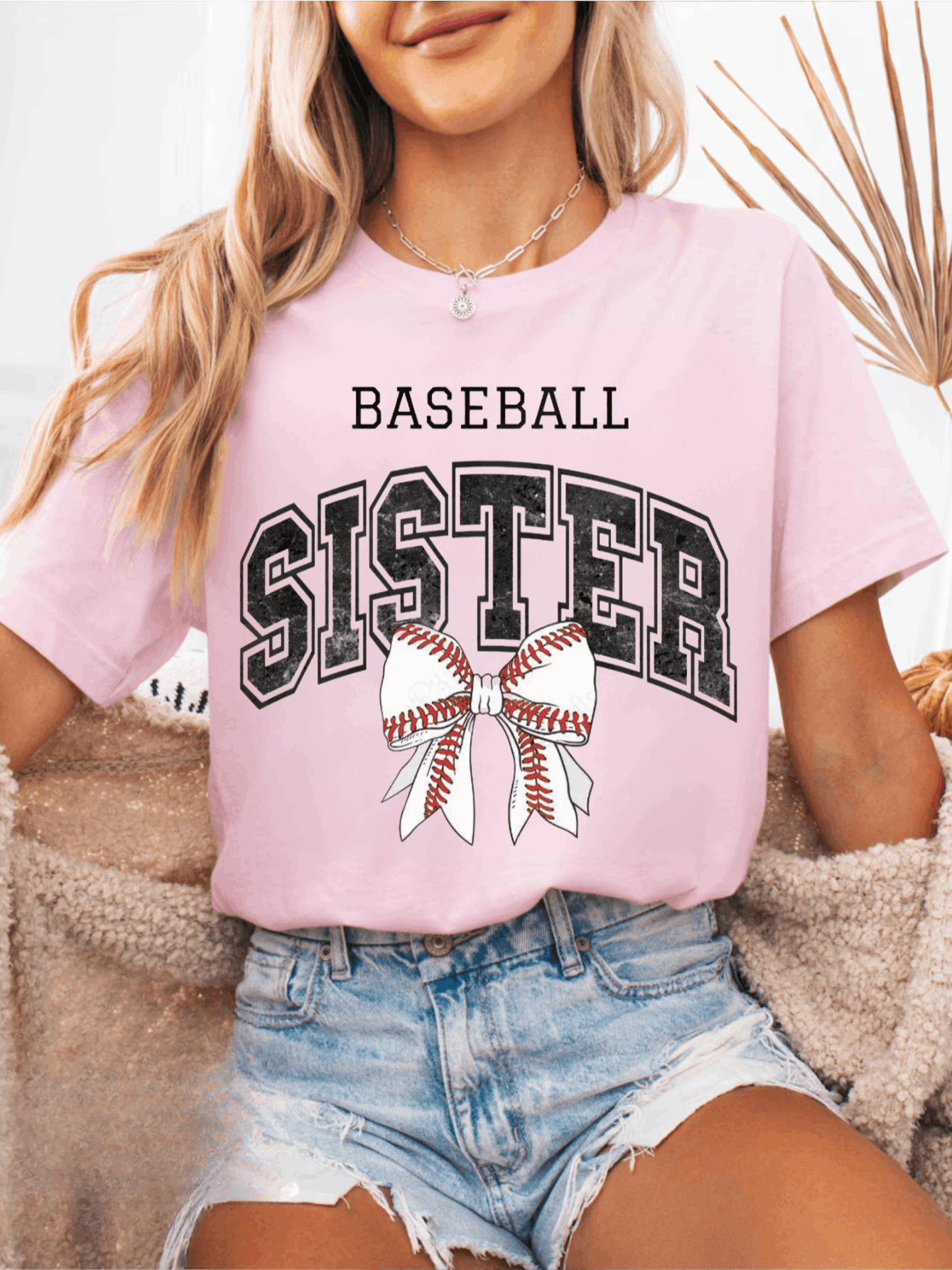 Baseball Sister, Sports Sister, Baseball Bow Coquette - Soft Casual Short Sleeve Top, Machine Washable, Perfect for Spring & Summer, Gift for Her