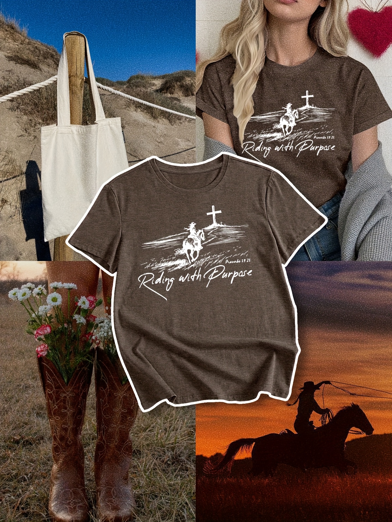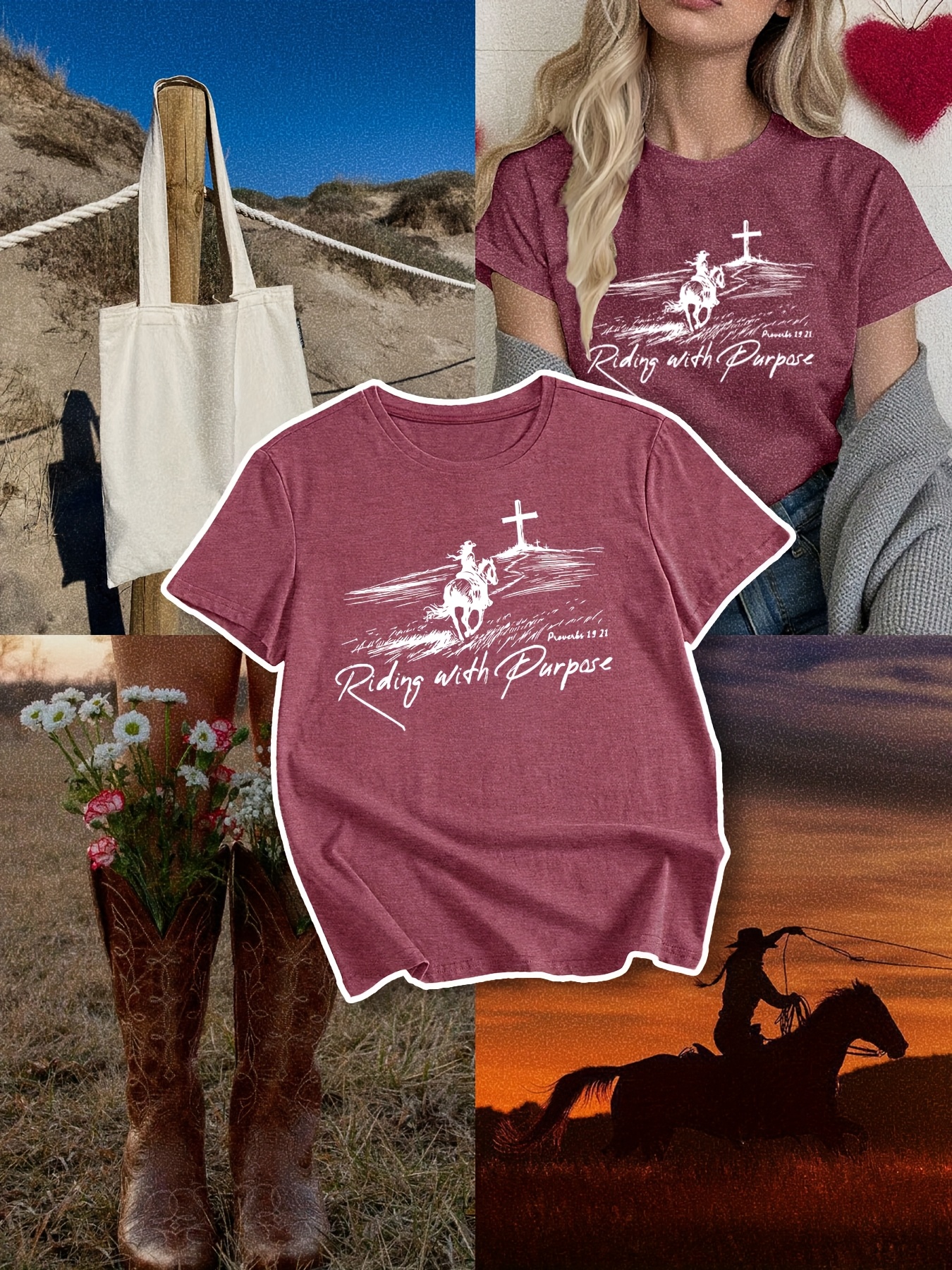 [Inspirational T-Shirt] Comfortable Polyester Women's Inspirational Christian T-Shirt | "Riding with Purpose" Western Cowgirl Faith Graphic, Short Sleeve, Casual Round Neck Tee for Spring and Summer