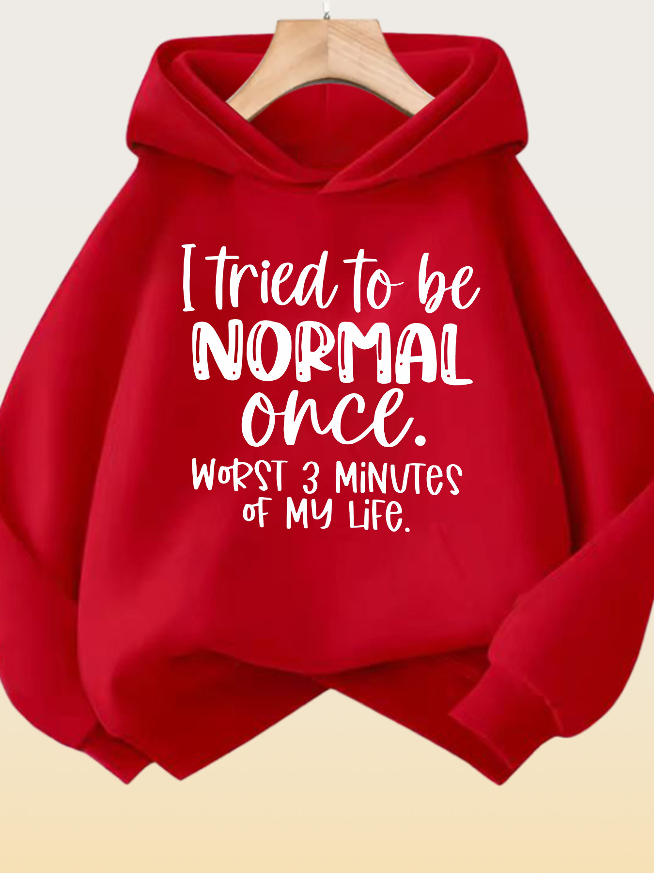 Women's Soft Lavender Funny Sarcastic Quote Hooded Sweatshirt - "I Tried to Be Normal Once... Worst 3 Minutes of My Life" - 100% Polyester Machine-Washable Casual & Pullover for Fall/Winter, Humorous Graphic Sweater with White Text Print