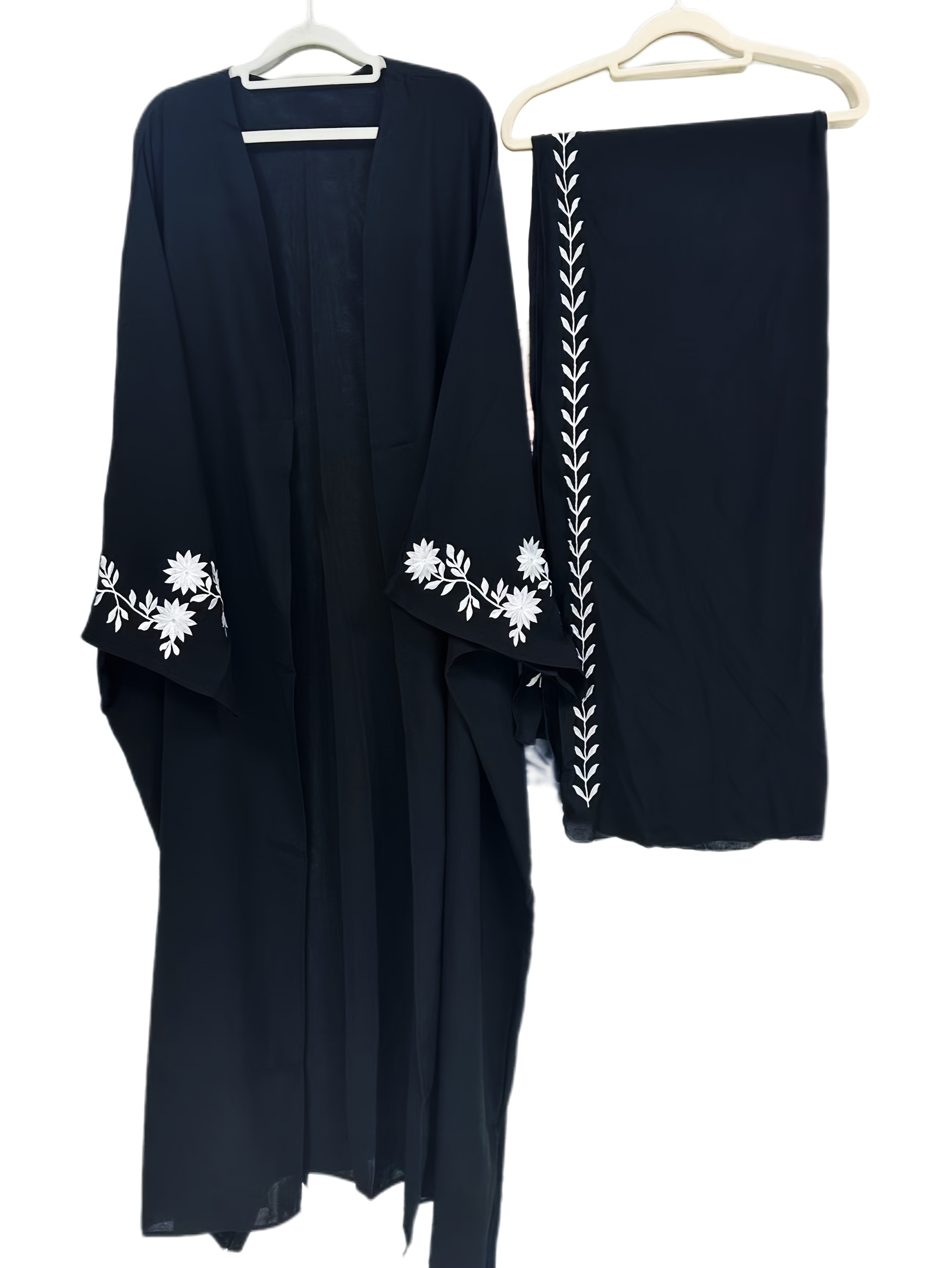 1pc Middle Eastern-Inspired Embroidered Scarf-Style Abaya Cardigan for Women - Solid Color Long Sleeve Loose Fit Breathable All-Season Versatile Muslim Bayan Elbiseleri