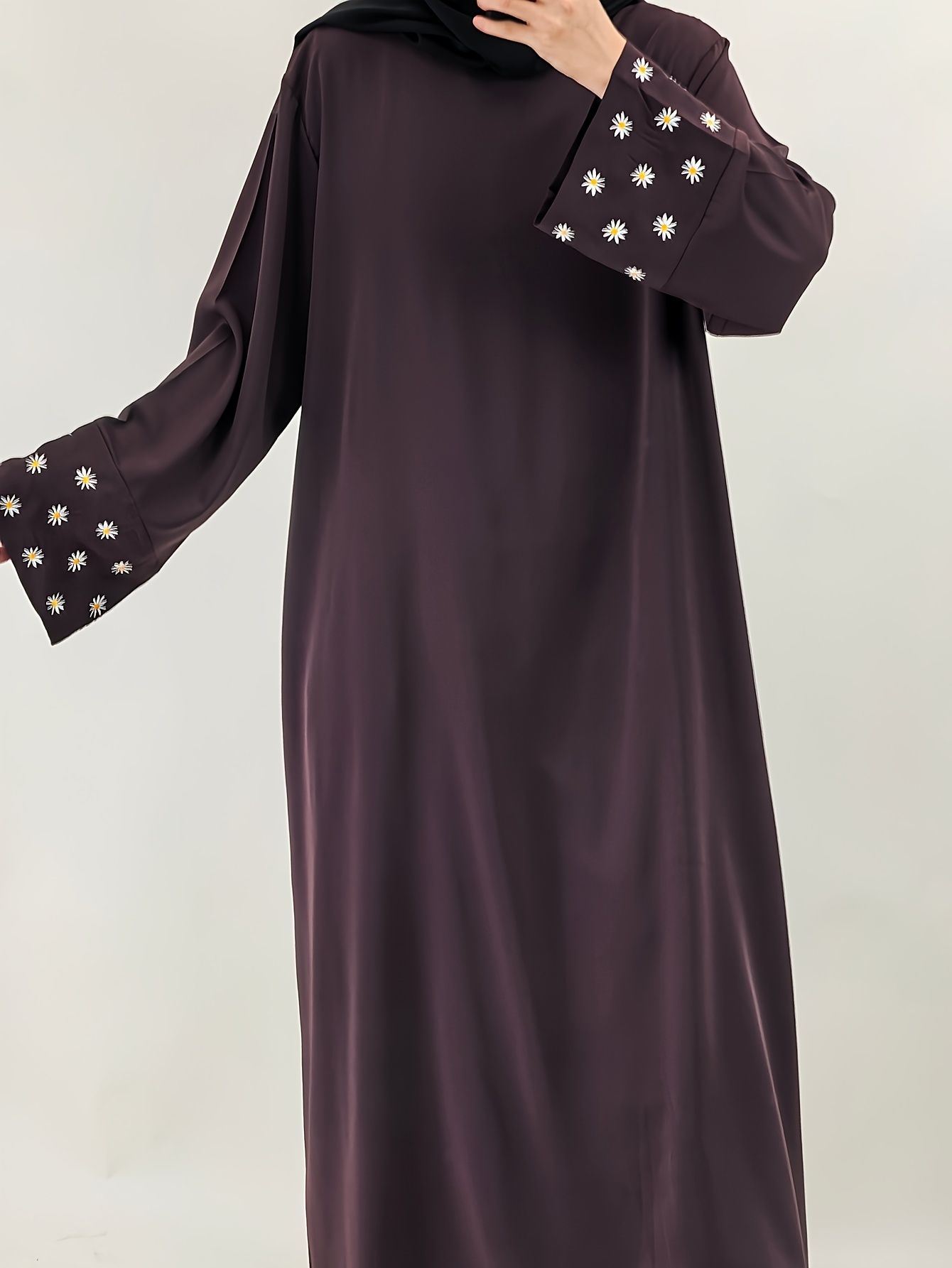 1pc Women's Islamic Abaya Dress - Elegant Hijab Outfit with Cuff Floral embroidery, Navy Blue Arabicrobe, Loose Fit Non-Stretch Muslim Dress for Daily Prayer, Office, Travel - No Scarf Needed, Modest Apparel, Quality Embroidery Detail