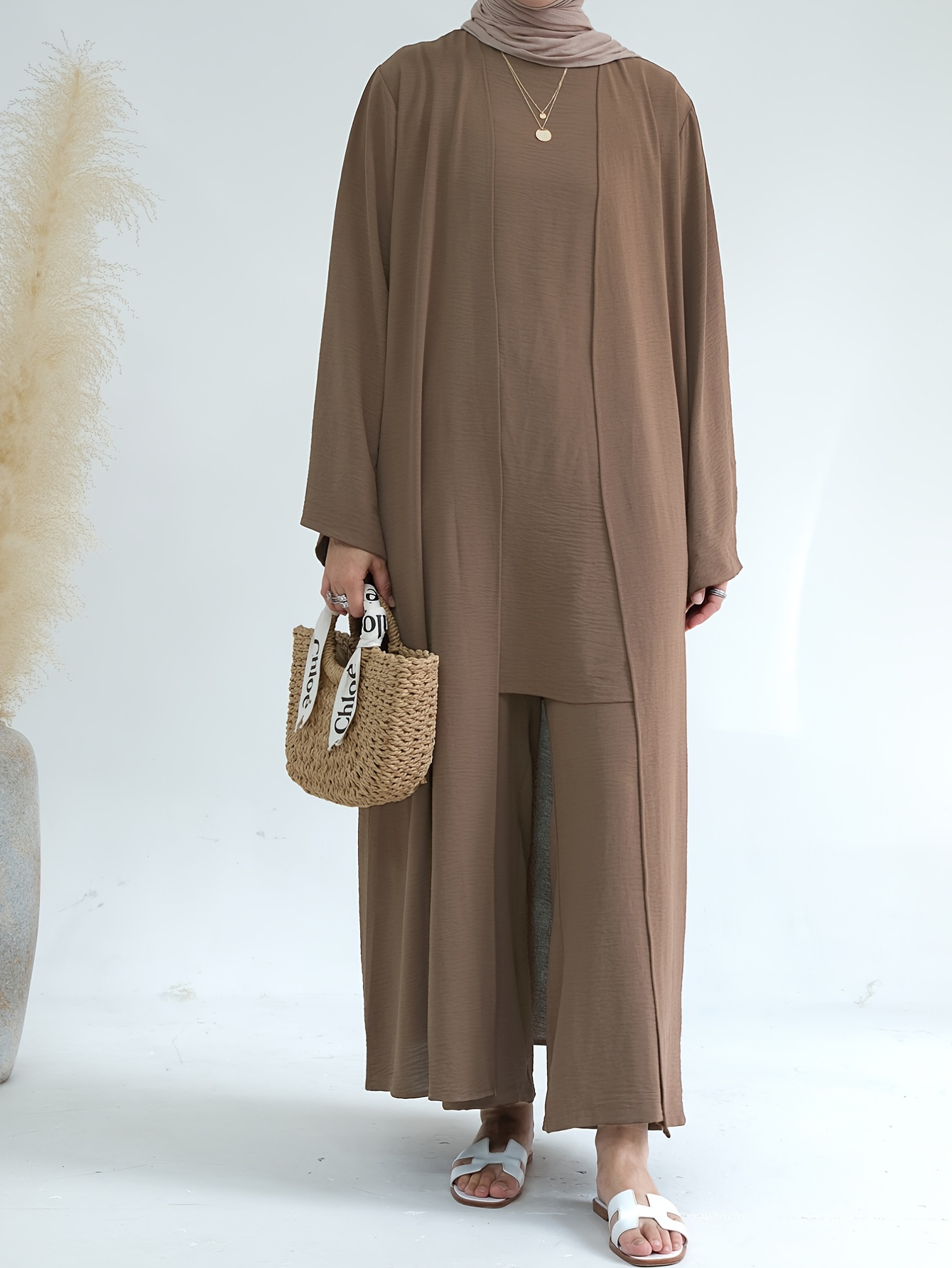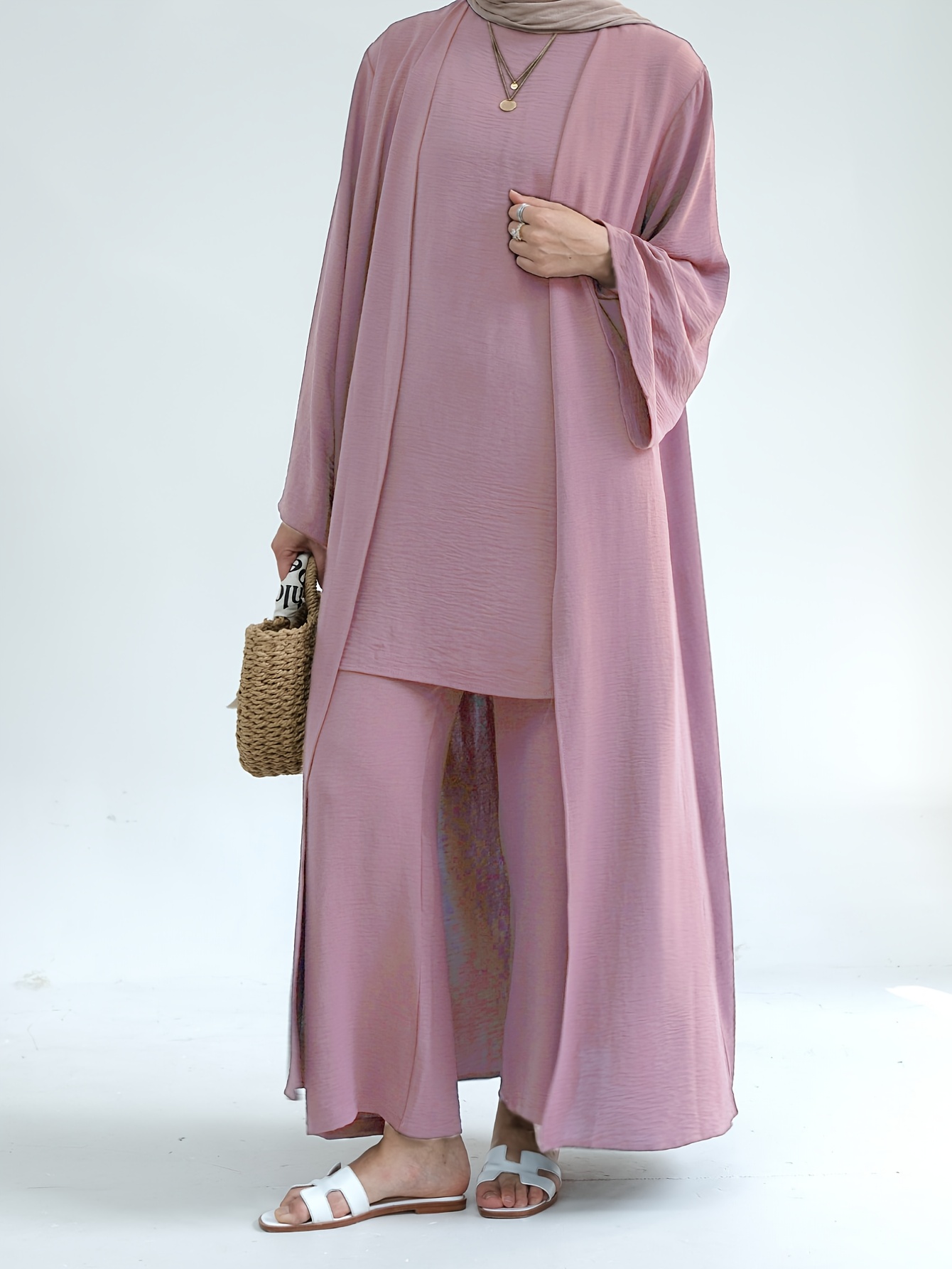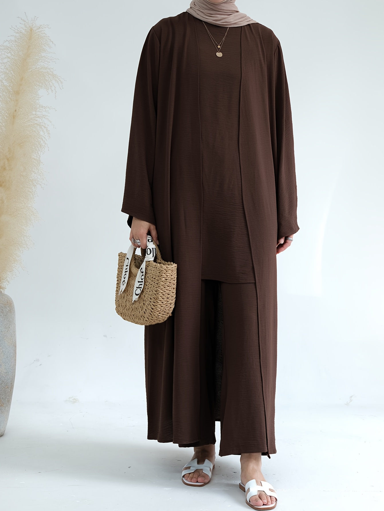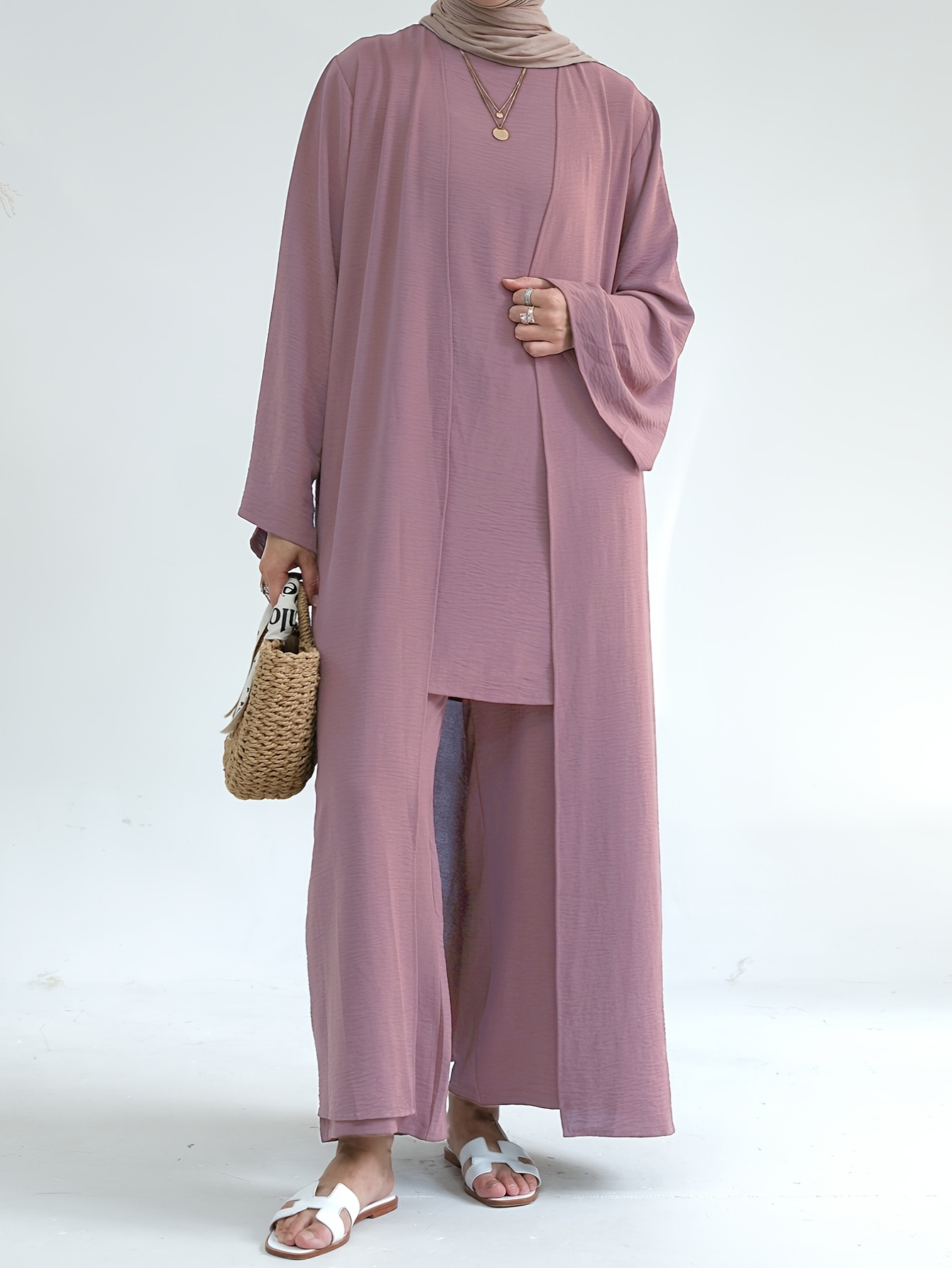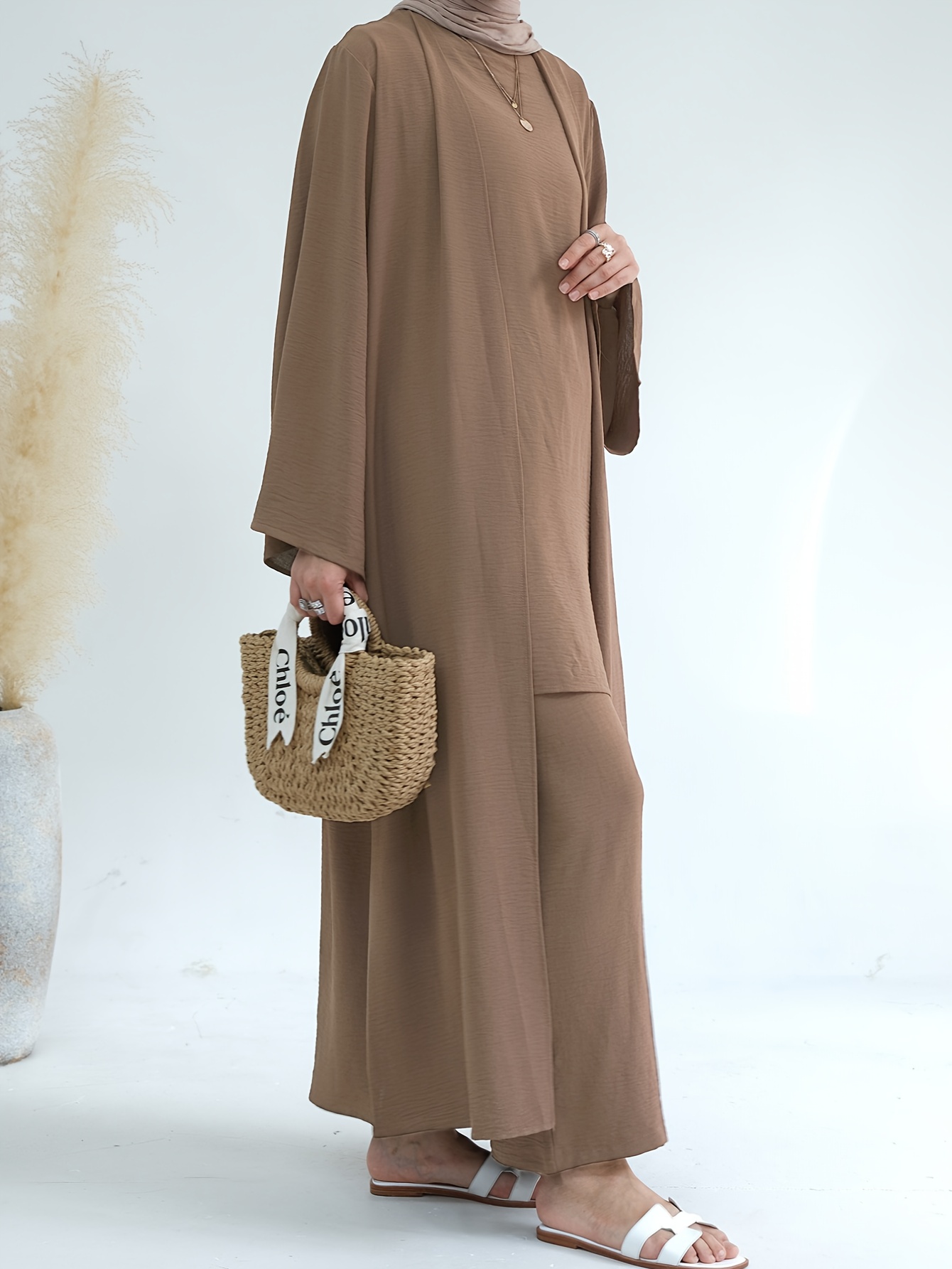 A Three-Piece Suit (Jacket + Short-Sleeved Shirt + Pants), Muslim Dress Woman Open Abaya Femme Open Abaya Abaya Été Abaya Femme Women Abaya Muslim Dress Robe Été Abaya Femme